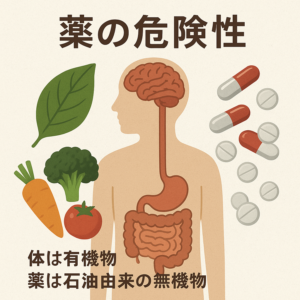 現代医療において薬は不可欠な存在とされています。しかし、その根本にある「成分」について深く考える方は多くありません。人体は本来、有機物で構成され、自然界の栄養素や酵素によって調和を保ちながら生命活動を営んでいます。ところが、薬の多くは石油を原料とした化学合成物質であり、無機的な性質を持っています。この本質的な違いが、長期的に体へ深刻な影響を及ぼすのです。